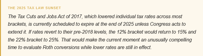 "A Roth conversion is not a tax elimination strategy. It is a tax timing strategy. The goal is to pay taxes when the rate is lowest, not to avoid them altogether."
