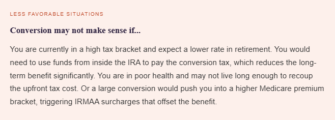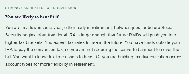 Roth conversions are not universally beneficial. They work best in specific situations.